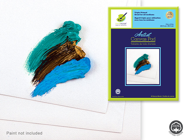 The 9"x12" Artist Canvas Pad comes triple primed, ensuring a smooth and ready-to-use surface. It contains 10 sheets, each made from 100% cotton for a durable and reliable painting experience.