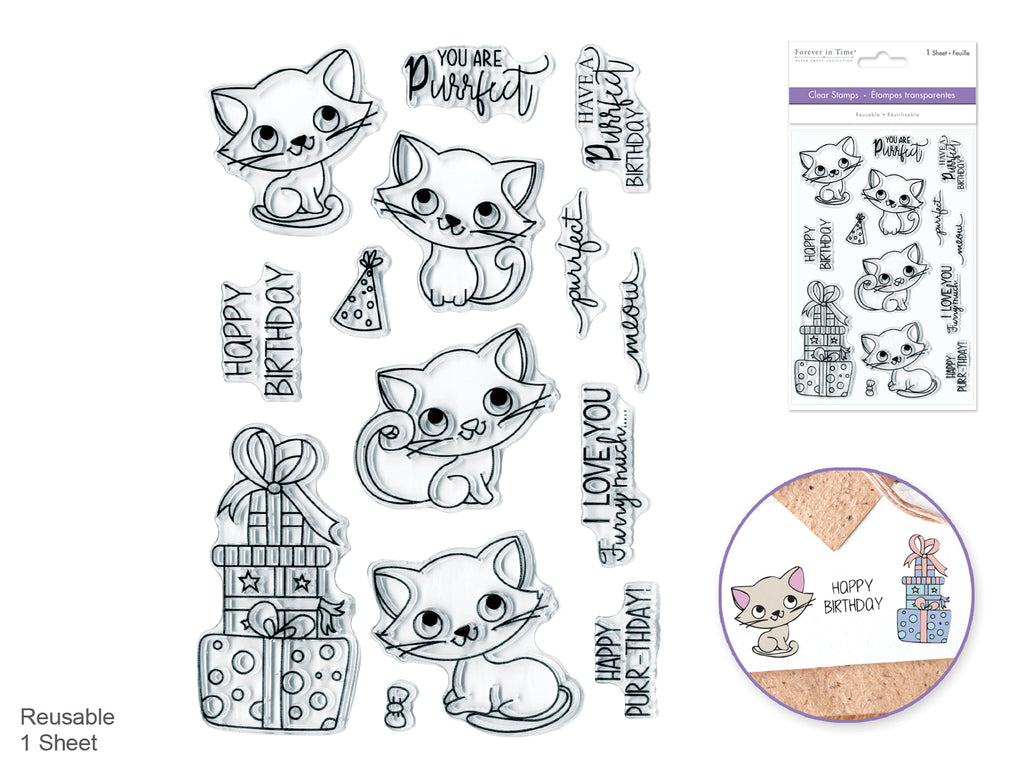 The Clear Stamps feature a reusable 'You Are Purrfect' design, measuring 4.3"x6.3". Ideal for crafting and scrapbooking, these stamps offer a charming and versatile design.