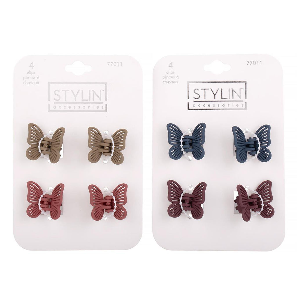 Keep flyaways in place with the Stylin 4-Pack Small Matte Butterfly Hair Clips. These small, matte-finish hair clips offer a secure, gentle hold for bangs, half-up styles, and everyday use, ideal for thin to medium hair. Great value hair accessories for women and girls; keywords: butterfly hair clips, small matte hair clips, hair accessories, dollar store find.