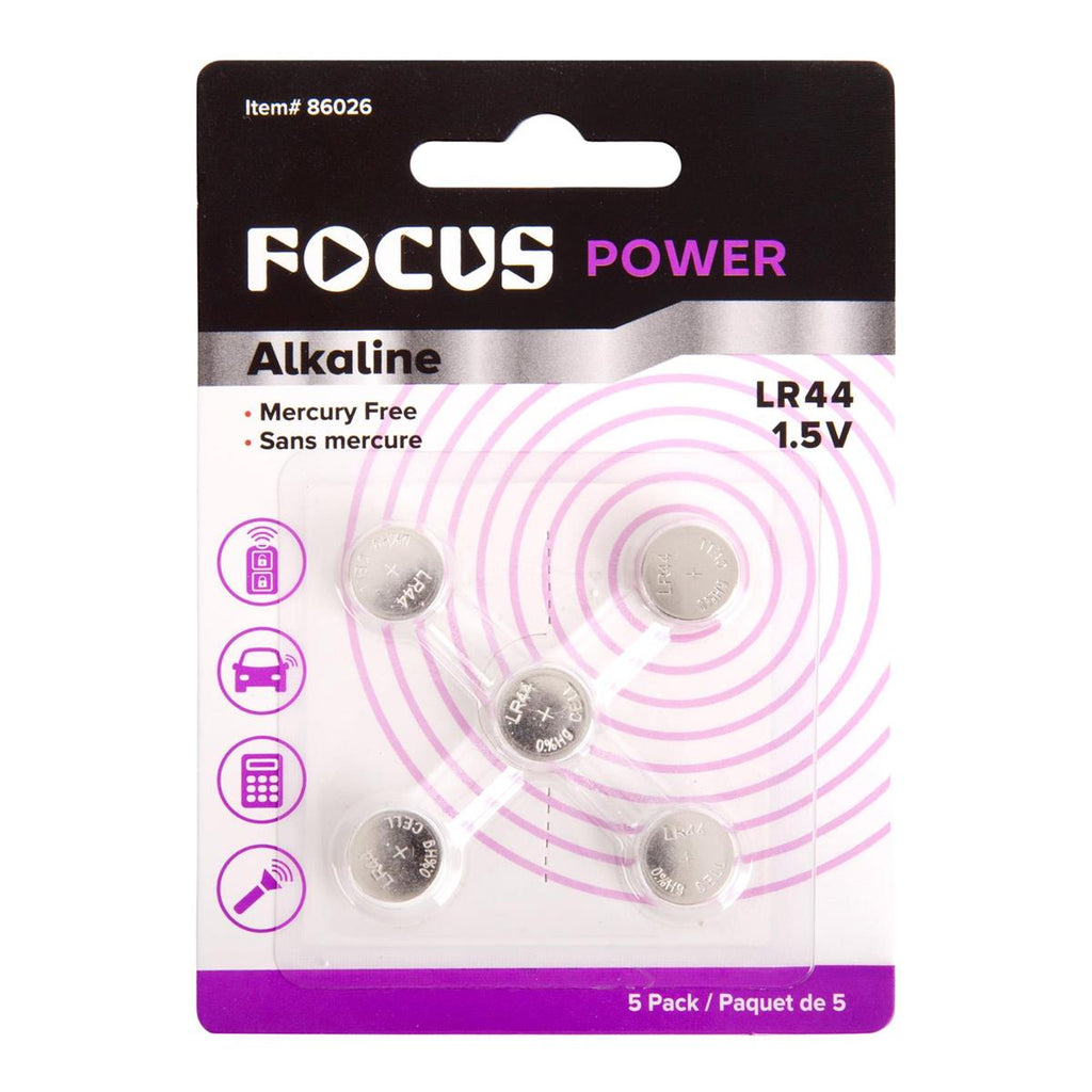 These LR44 alkaline button cell batteries (1.5V) are mercury-free and come in a 5-pack for easy replacements. Great for watches, calculators, toys, laser pointers, and thermometers, this LR44 watch battery size provides reliable power for small electronics.