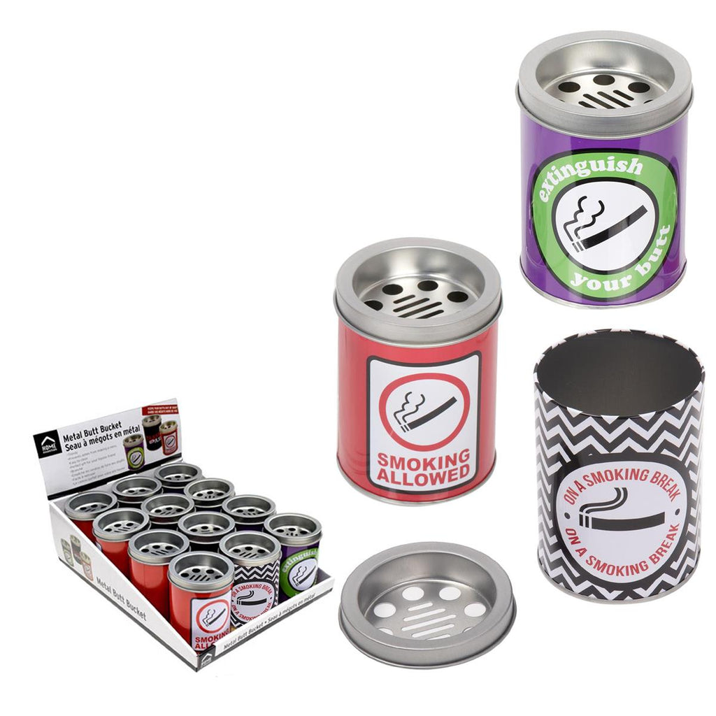 The 4" Metal Butt Bucket Ashtray is a compact and durable solution for smokers. Its metal design ensures longevity, while the 4-inch size makes it perfect for small spaces like cars or patios. Keep your area clean and odor-free with this practical and easy-to-use ashtray.
