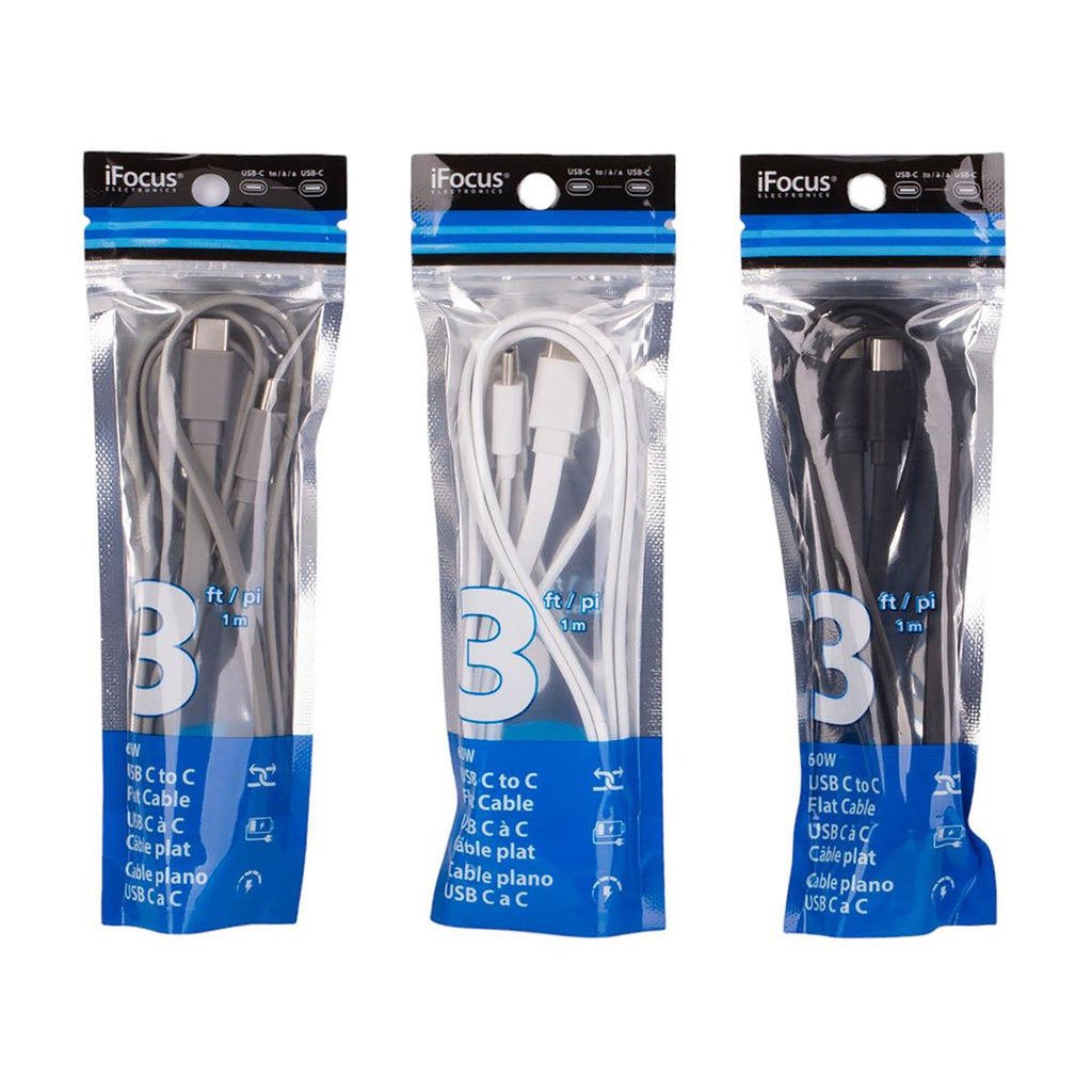 The iFocus 3ft 60W USB C-C Flat Cable is perfect for fast charging and data transfer. Its compact 3-foot length and flat design make it tangle-free and easy to store. Ideal for travel or home use, this cable ensures reliable connectivity for all your USB-C devices.